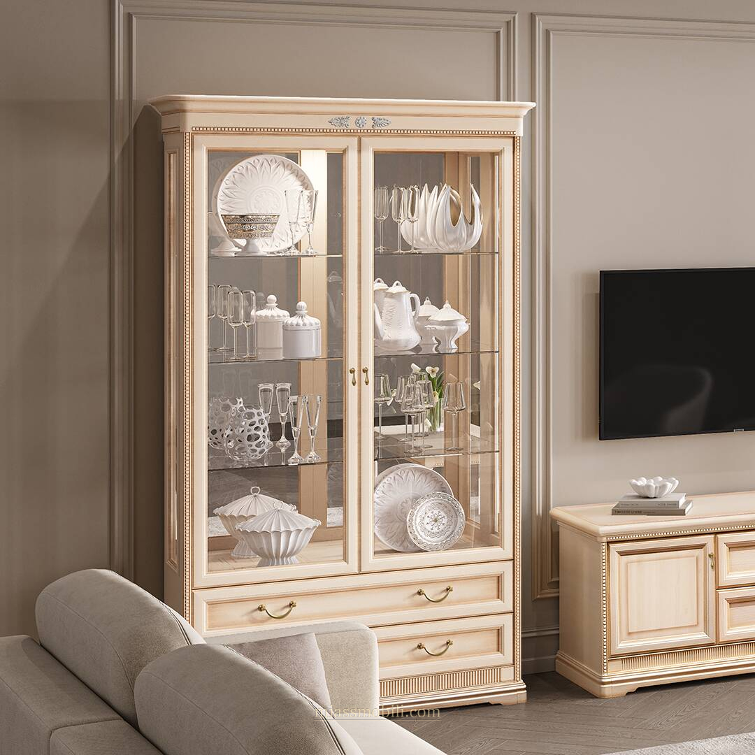 Тумба ТВ крем со стеклянными дверками Тумба ТВ крем со стеклянными дверками