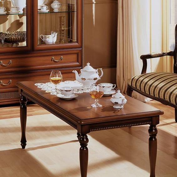 Журнальный столик на изящных резных ножках станет прекрасным дополнением к набору мебели для гостиной.