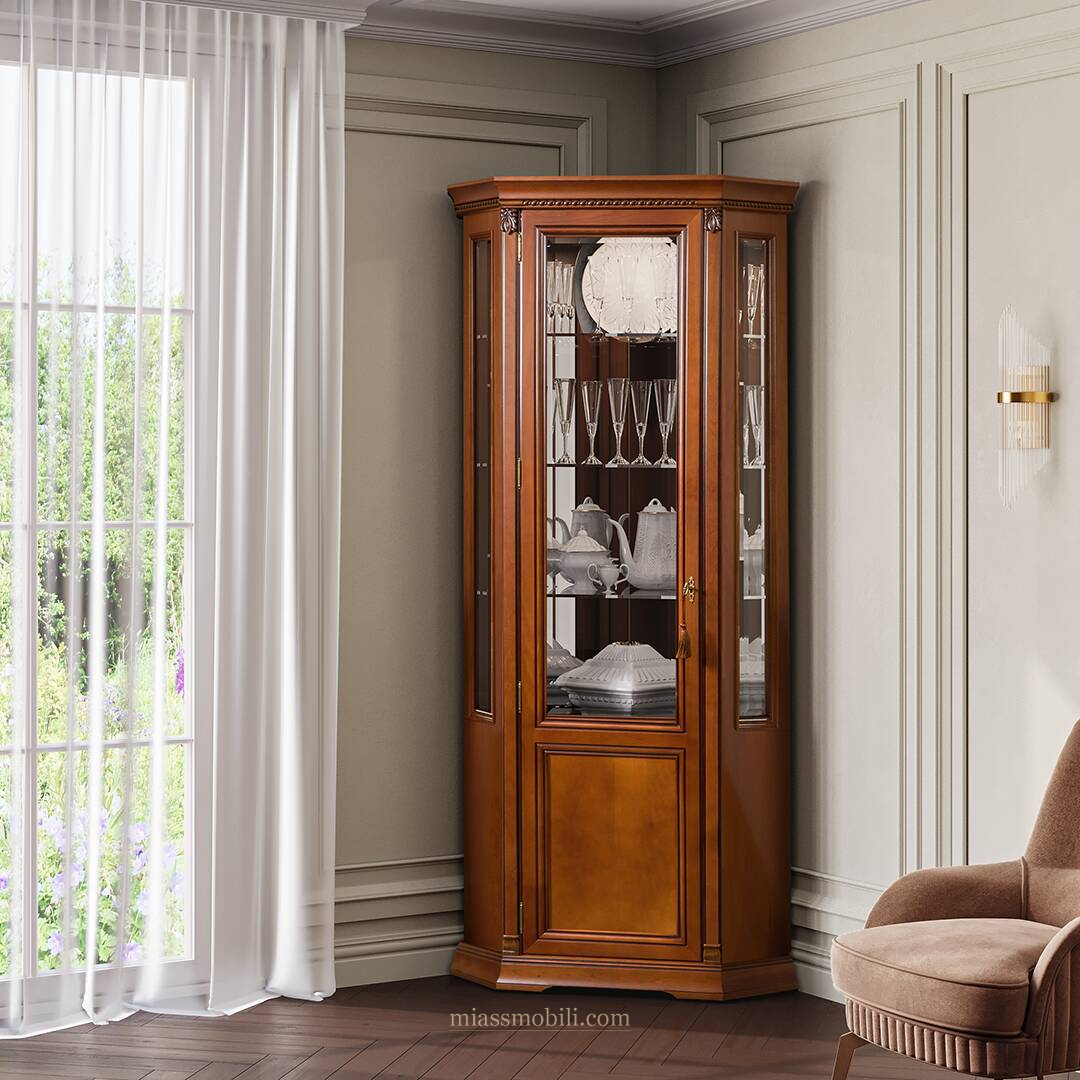 Шкаф для посуды угловой Лоренцо вишня Lorenzo вишня купить в Санкт-Петербурге