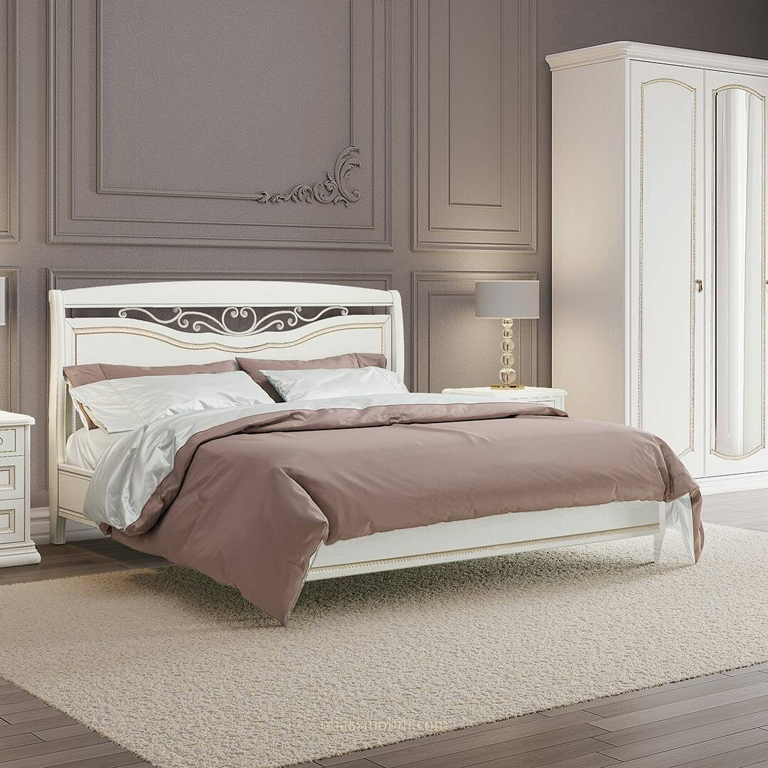 Кровать двойная (1800x2000) Luigi цвет белый с кованым элементом без ножной спинки Кровати купить в Санкт-Петербурге