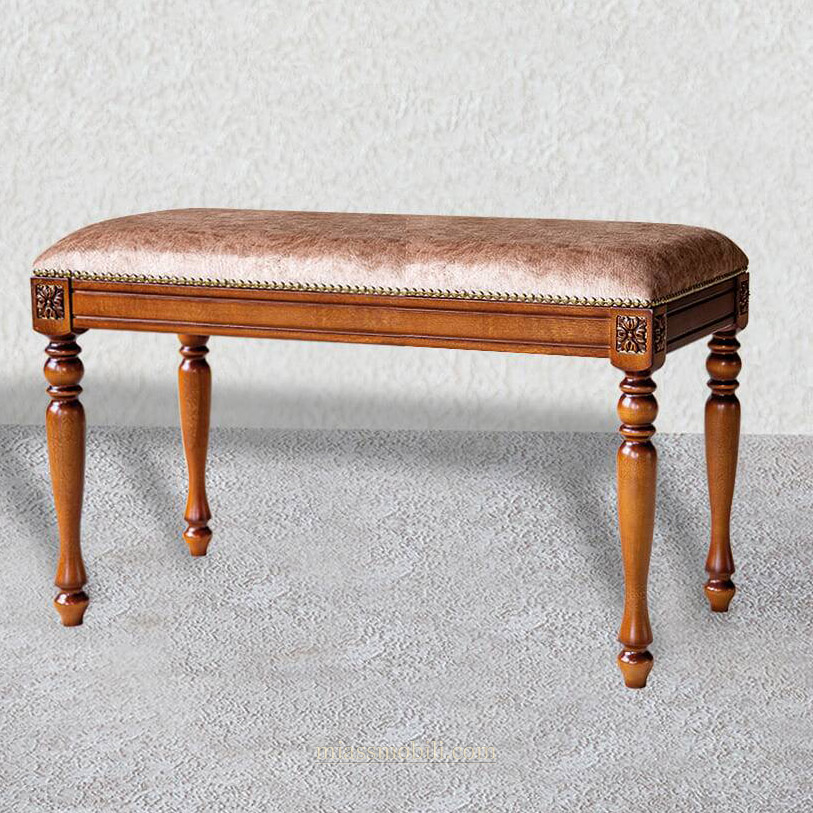 Небольшая банкетка на изящных резных ножках из массива бука прекрасно впишется в интерьер вашего дома. Банкетка декорирована резными элементами с легкой позолотой в прозрачной отделке.
