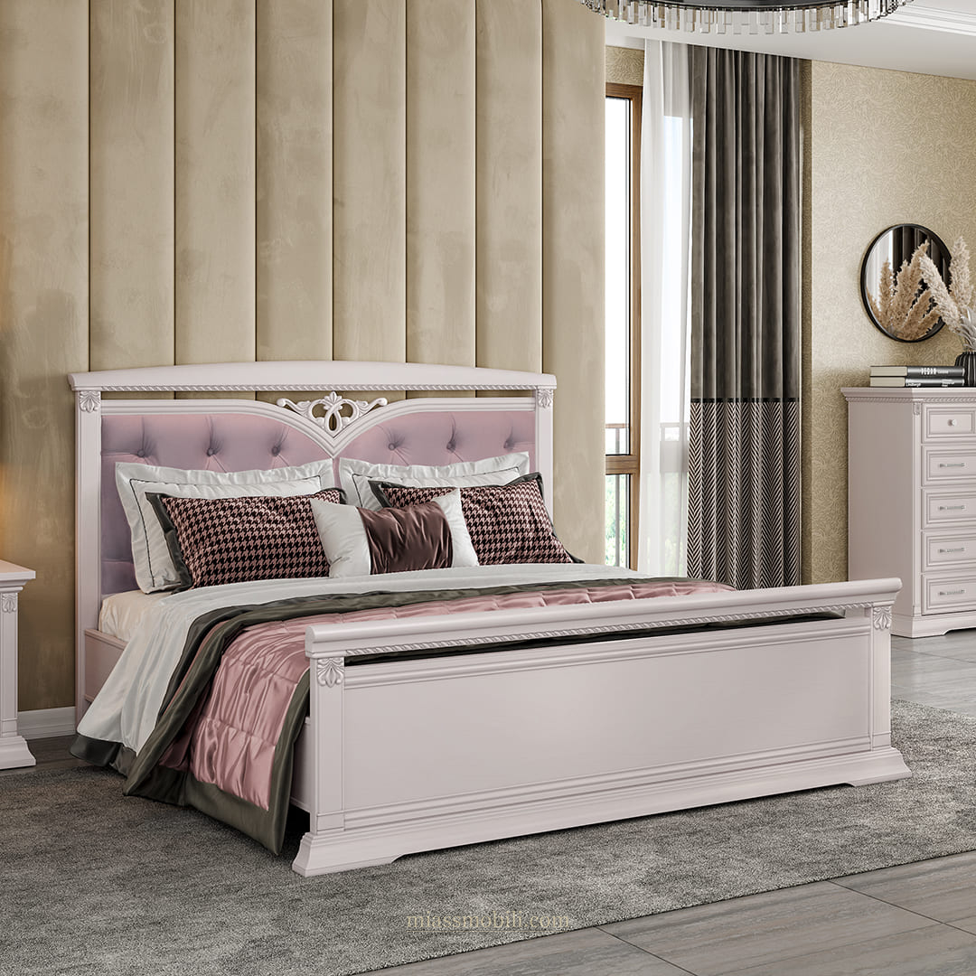 Кровать двойная Lorenzo пудра с мягкой головной и ножной спинкой Lorenzo пудра купить в Санкт-Петербурге