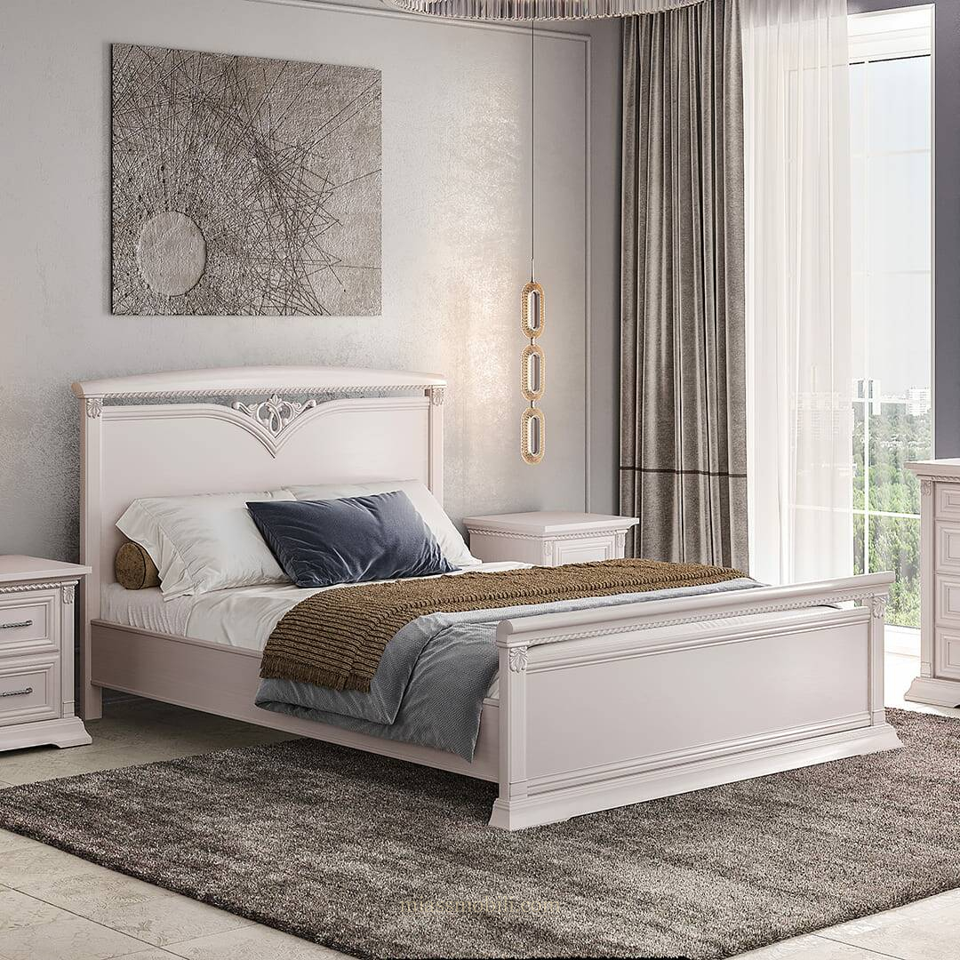Кровать двойная Lorenzo пудра с ножной спинкой. Lorenzo пудра купить в Санкт-Петербурге