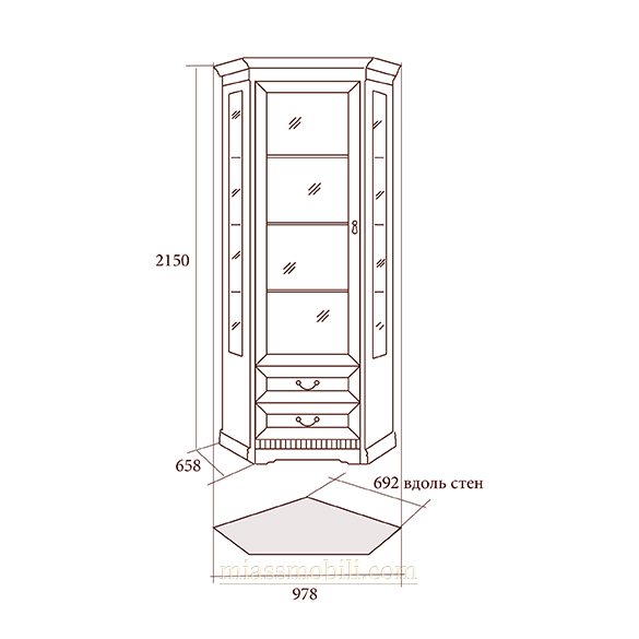 978 (вдоль стен 692 мм)x658x2150