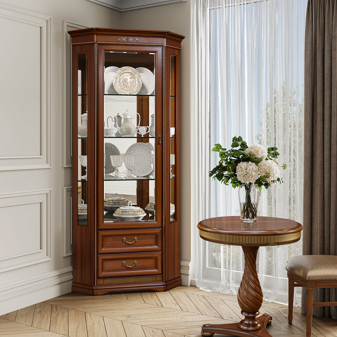 Шкаф для посуды угловой (с зеркалом) Джоконда орех купить в Санкт-Петербурге